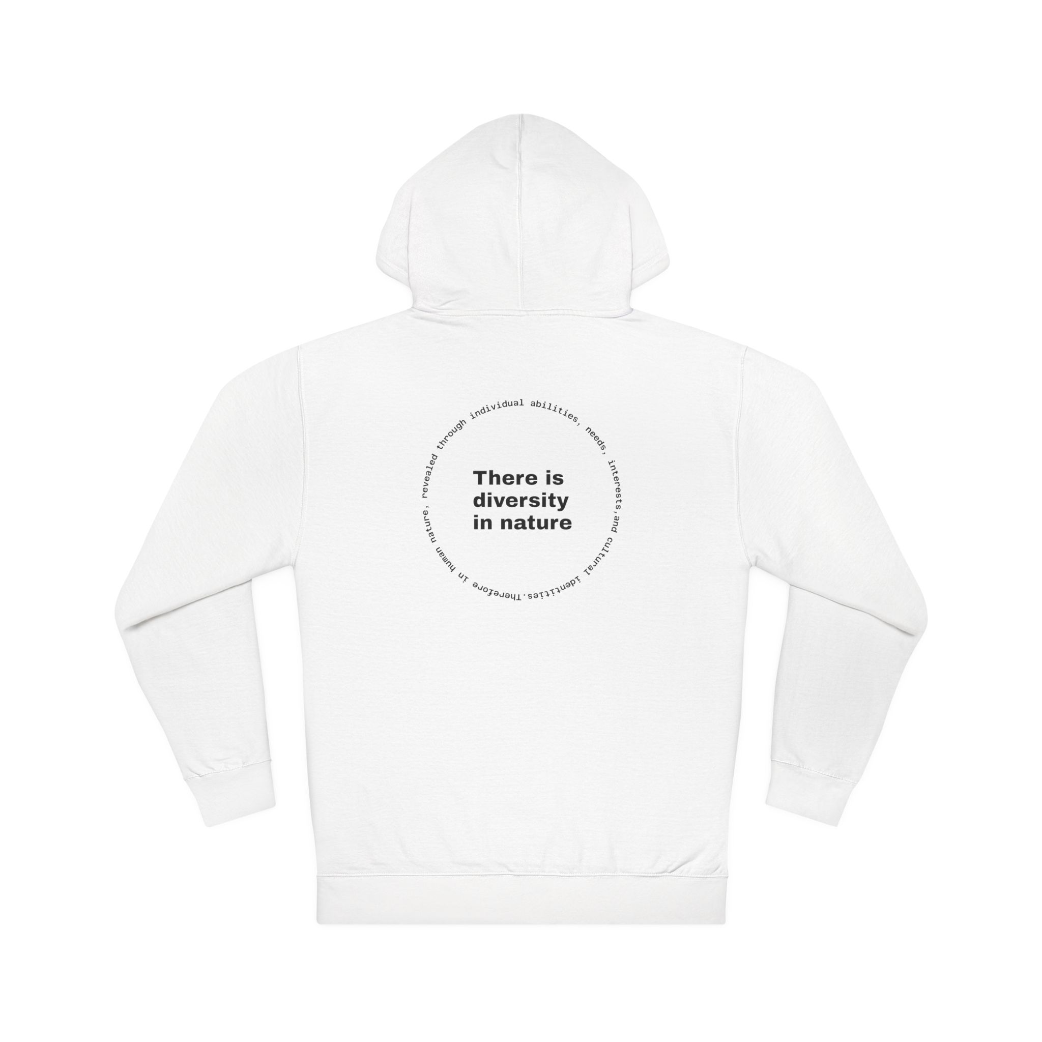 Made to be stylish as well as comfortable, it strikes the perfect balance between cozy and stretchy. What’s more, the metal eyelets for your hoodie drawstrings add durability while the jersey-lined hood keeps you nice & warm when it’s needed. Education Center logo and quote: “There is diversity in nature, and therefore in human nature, revealed through individual abilities, ideas, interests, needs, and cultural identities”.